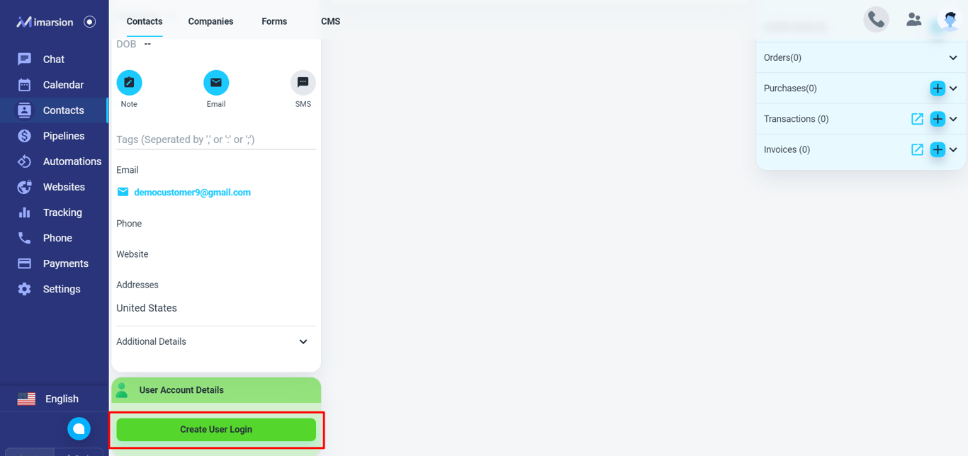 Please, create a contact for the user if you don’t have that already. Please, click on the ‘Database’ menu on the left menu bar. Once the page is loaded, click on the ‘Create Contact/User’ button.